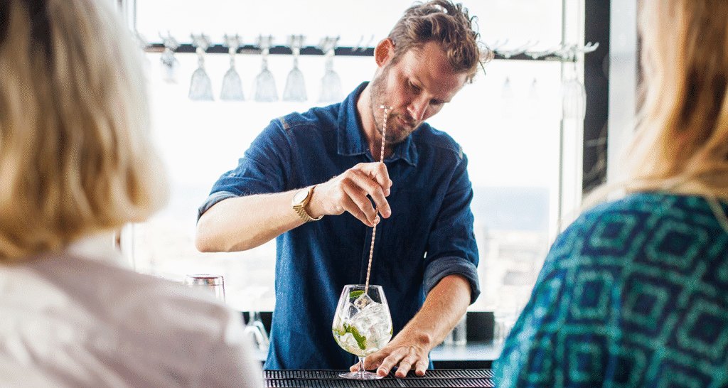 - Cristalería adecuada: vasos bajos para whisky, copas balón para gin, martineras para cocteles finos.