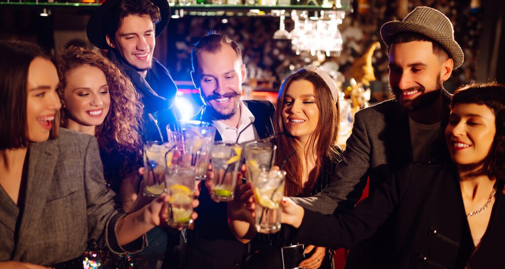 Grupos de amigos que buscan un lugar trendy para cena y drinks.
